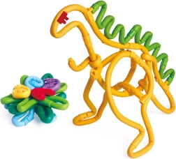 Łączniki, kółka i podstawka pozwalają budować modele 3D – od domków i kwiatów po urocze dinozaury. Konstrukcje dobrze trzymają kształt i można je wielokrotnie modyfikować.