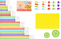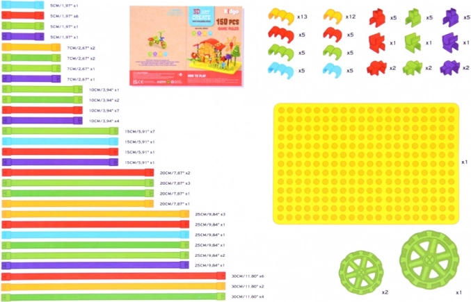 W zestawie znajduje się żółta płyta bazowa, łączniki i kółka do solidnych i funkcjonalnych modeli. Całość uzupełnia przejrzysta instrukcja obrazkowa ułatwiająca start.