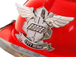 Czerwony dziecięcy hełm z przezroczystą przyłbicą uzupełnia strażacki wygląd, a dzięki efektom świetlnym i dźwiękowym nadaje zabawie realizmu. Regulowany obwód zapewnia wygodne noszenie.