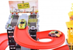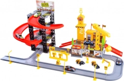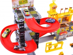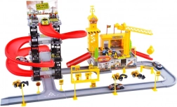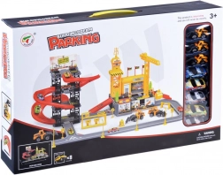 Rozbudowany dziecięcy zestaw do budowy parkingu z placem budowy oferuje mnóstwo kreatywnej zabawy. Kolorowe plastikowe elementy, 4 poziomy parkowania, długie zjazdy, stacja paliw oraz znaki uzupełnia połączona strefa budowy z żurawiem i maszynami. W zestawie znajduje się 8 pojazdów oraz bogate akcesoria do realistycznej zabawy.