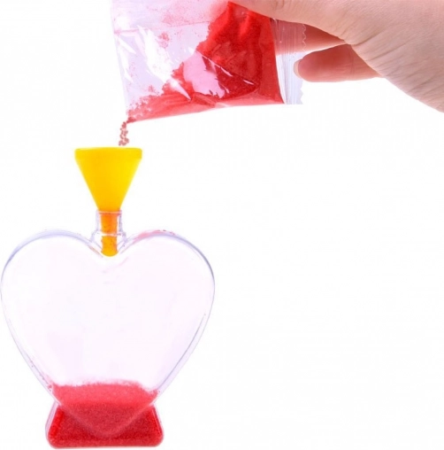 Dzięki praktycznemu lejkowi łatwo wsypiesz piasek do wąskich szyjek i stworzysz precyzyjne warstwy bez bałaganu.