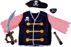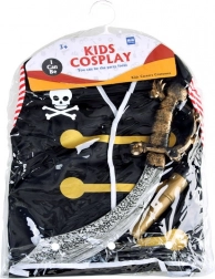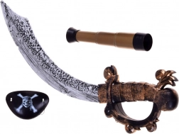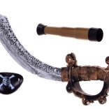 Wszystko w jednym opakowaniu: kapelusz, bluza, miecz, luneta i opaska na oko — idealne do pirackich przygód.