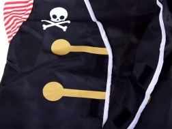 W mgnieniu oka zamień swoje dziecko w dzielnego korsarza. Ten piracki kostium łączy wyrazisty design z praktycznymi dodatkami, dzięki czemu świetnie sprawdzi się do zabawy w domu i na tematycznych przyjęciach. Bluza z motywem czaszki i skrzyżowanych kości, prążkowane rękawy oraz kapelusz z czaszką tworzą autentyczny wygląd pirata.