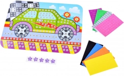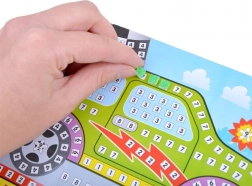 Dzieci przyklejają piankowe elementy na ponumerowane pola i łatwo tworzą piękną mozaikę auta. Idealne na pierwsze kreatywne projekty.