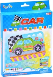 Ten kolorowy zestaw mozaiki z motywem auta jest idealny dla dzieci, które lubią tworzyć. Na przygotowanej kartonowej planszy z obrazkiem dzieci przyklejają piankowe kwadraciki i naklejki według numerów i kolorów, dzięki czemu łatwo osiągną piękny efekt bez nożyczek i kleju.