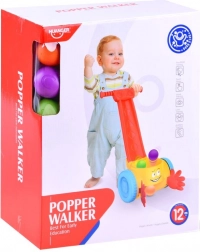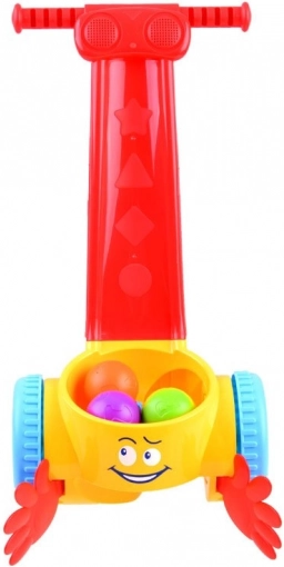 Zabawka wykonana z wysokiej jakości tworzywa w atrakcyjnych kolorach. Dzięki dużemu uchwytowi jest łatwa w prowadzeniu nawet dla maluchów. W zestawie znajdują się trzy plastikowe piłeczki, które można wkładać, wyjmować i ponownie łapać – idealne do aktywnej i wesołej zabawy w domu oraz na gładkiej powierzchni.