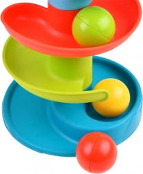 Zestaw zawiera sześć intensywnie kolorowych kulek i sześć spiralnych platform, które tworzą atrakcyjny, płynny tor pełen ruchu i dźwięku.