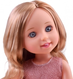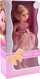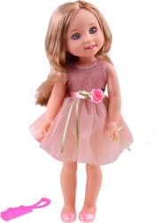 Urocza lalka o wysokości 36 cm w różowej koktajlowej sukience ucieszy każdą małą księżniczkę. Ma długie, możliwe do czesania włosy, ruchome ręce i nogi, a dzięki solidnemu plastikowemu korpusowi stabilnie siedzi. W zestawie znajduje się różowy grzebyk ułatwiający czesanie i tworzenie fryzur.