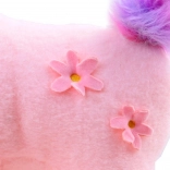 Uroczy pluszowy jednorożec w pastelowych kolorach to idealny towarzysz do przytulania i zabawy. Ma mięciutkie ciało, haftowane oczy, serduszko na policzku oraz kwiatuszki z boku. Delikatna tęczowa grzywa i ogon nadają mu magiczny wygląd, a przyjemny w dotyku materiał jest stworzony do dziecięcych uścisków.
