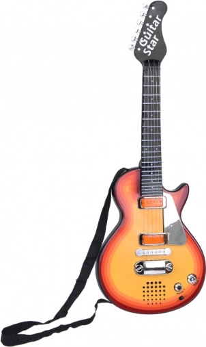 Ta stylowa elektryczna gitara w energetycznej pomarańczowo‑czarnej kolorystyce to świetny wybór dla dzieci, które kochają muzykę. Metalowe struny reagują na dotyk, a migające pomarańczowe światła pod strunami tworzą atrakcyjne show przy każdym graniu.