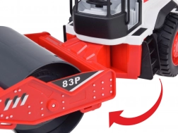 Zabawka została wykonana z realistycznymi detalami, które naśladują prawdziwy walec drogowy.