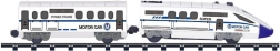 W skład zestawu wchodzi lokomotywa i tory o łącznej długości 366 cm, które pozwalają na tworzenie różnych tras według wyobraźni.