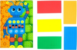 Ten prosty i kolorowy zestaw ucieszy wszystkich małych twórców. Na kartonową podkładkę według wzoru lub własnej wyobraźni przykleja się samoprzylepne piankowe elementy, dzięki czemu dziecko w prosty sposób stworzy piękny obrazek bez bałaganu i bez potrzeby użycia kleju czy nożyczek.