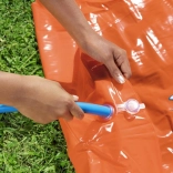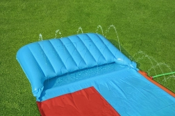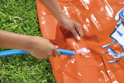 Szybkie i łatwe ustawienie. Wystarczy rozwinąć zjeżdżalnię na trawie i podłączyć wąż. Specjalne mocowania zapewniają, że zjeżdżalnia pozostaje mocno na swoim miejscu.