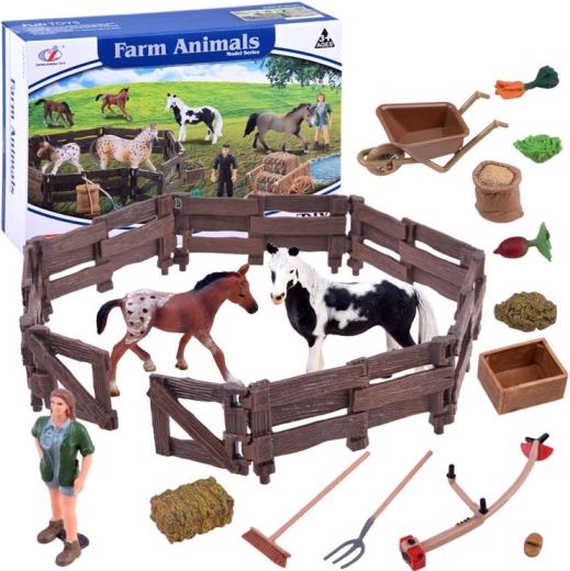 Ten kompleksowy zestaw przenosi na Twój stół pełną scenę życia na farmie. Znajdziesz w nim dużego konia, urocze źrebię, figurkę rolnika oraz szereg narzędzi i akcesoriów do opieki nad zwierzętami. Realistyczne proporcje, wyraziste kolory i precyzyjne detale sprawiają, że zestaw jest świetną zabawką i pomocą edukacyjną.