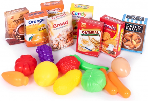 Różowy dziecięcy wózek na zakupy do zabawy w supermarkecie lub w kuchni + 18 akcesoriów