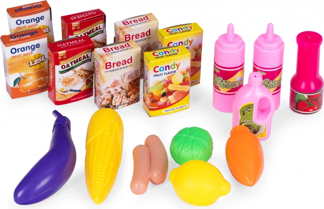 Zestaw zawiera autentycznie wyglądający wózek sklepowy z różnymi produktami, który pomaga rozwijać zdolności motoryczne i organizacyjne. Maluchy mogą cieszyć się wieloma imitacjami prawdziwych produktów, od warzyw po słodycze, dzięki czemu nauka robienia zakupów staje się fascynującym doświadczeniem.