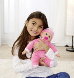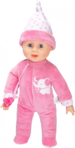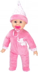 Przyjemnie miękkie wykonanie, zdejmowane różowe ubranka i smoczek wspierają motorykę małą oraz zabawę w opiekę.