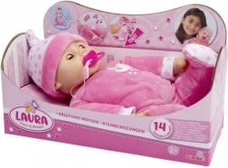 Dobranoc, mała Lauro! Po dniu pełnym zabaw lalka jest gotowa do snu – delikatnie oddycha, jej brzuszek unosi się i opada, a po położeniu zamyka oczy. Z miękkim ciałem i uroczym wyrazem twarzy świetnie nadaje się do przytulania i twórczej zabawy.