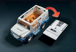 Świętuj 50 lat marki PLAYMOBIL dzięki specjalnemu wydaniu ulubionego policyjnego zestawu. Transporter z pieniędzmi, zuchwały oszust i szybki motocykl tworzą pełne akcji, emocjonujące sceny. Dzięki zdejmowanemu dachowi i otwieranym tylnym drzwiom zabawa jest płynna i dynamiczna.