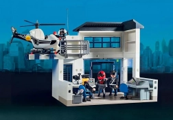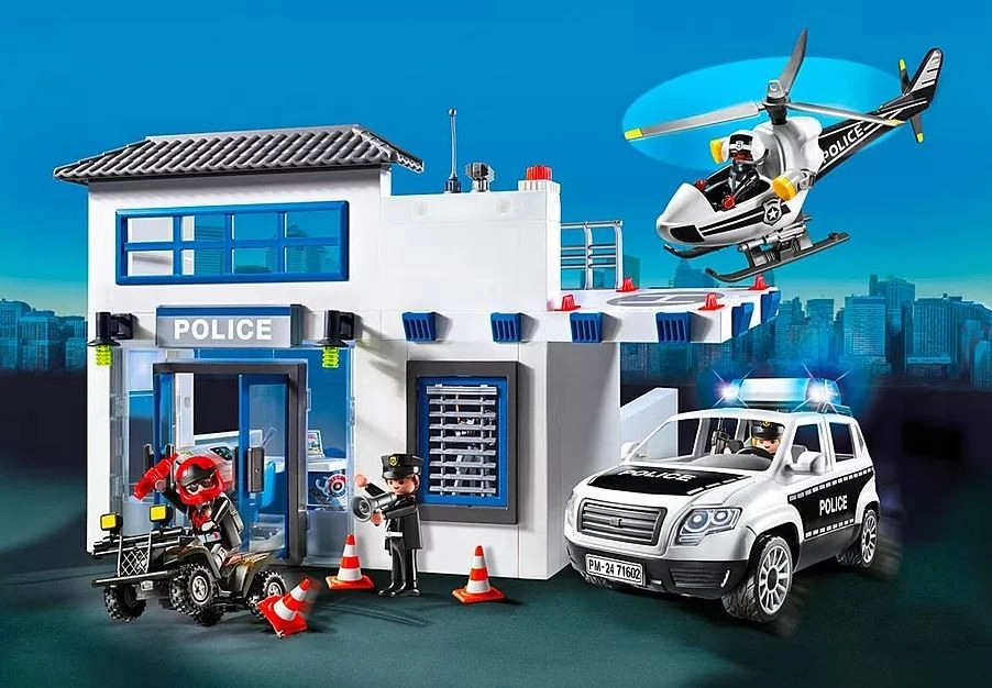 W centrum dowodzenia dużego posterunku policji odebrano telefon alarmowy. Poszukiwany złoczyńca ucieka na quadzie! Wielka brama posterunku jest już otwarta i rozpoczyna się pościg na sygnale. Gdy tylko podejrzany zostaje schwytany, pobiera mu się odciski palców i identyfikuje przestępcę. Jednak więźniowi udaje się uciec z dwóch cel przez dziurę w ścianie. Posterunek policji z miejscem na policyjny samochód (nie wchodzi w skład zestawu), a na dachu znajduje się lądowisko dla helikoptera.