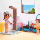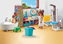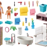 Delektuj się spokojną atmosferą w stylowej łazience. Zestaw zawiera stojącą wannę, kabinę prysznicową, umywalkę i szereg wyposażenia łazienkowego. Idealny do rozszerzenia nowego domu z oranżerią. Możliwość łączenia z innymi zestawami serii PLAYMOBIL Dom.