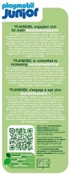 Playmobil Junior został zaprojektowany dla najmłodszych — maluchy już od pierwszego roku pokochają tę zabawkę. Zestaw wykonany jest w dużej mierze z biologicznie degradowalnych tworzyw roślinnych, a opakowanie z materiałów nadających się do recyklingu.