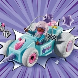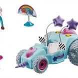 Jednorożec jest gotowy zabłysnąć w wyścigach dzięki swojemu kolorowemu gokartowi z świecącymi włosami, fioletowymi balonikami i błyszczącymi kryształami. Dzieci mogą próbować szybkich wyścigów, jazdy wokół przeszkód lub zwariowanych akrobatycznych sztuczek.