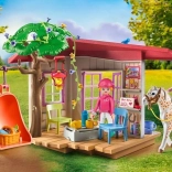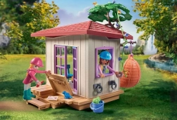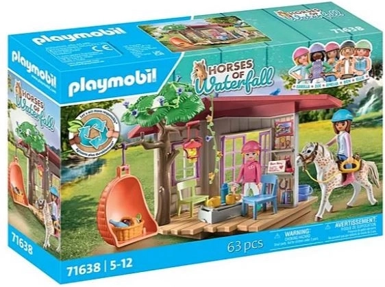 Wyrusz na jeździecką przygodę z tajnym Klubem miłośników koni PLAYMOBIL! Za małym wodospadem, w środku lasu, ekipa jeździecka przyjaciół z Waterfall zbudowała przytulną klubową kryjówkę z wygodną huśtawką i praktyczną tajną skrytką! Idealne miejsce na odpoczynek po długiej przejażdżce lub na tajne spotkania członków klubu. Isabella i Amelia zawsze zabierają ze sobą kubek gorącej czekolady i pyszne precelki. Przyjazny koń przysłuchuje się chichotom grupy przyjaciół i świergotowi ptaków.