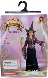 Buty i miotła nie są częścią zestawu, ale łatwo można je połączyć z własnymi akcesoriami. Kostium jest idealny dla dzieci o wzroście 120 - 130 cm.