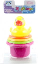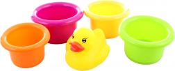 Kolorowe kubeczki i kaczka wspierają kreatywność i uczą dzieci podstawowych umiejętności motorycznych i rozróżniania kolorów.