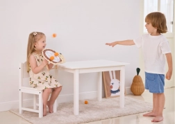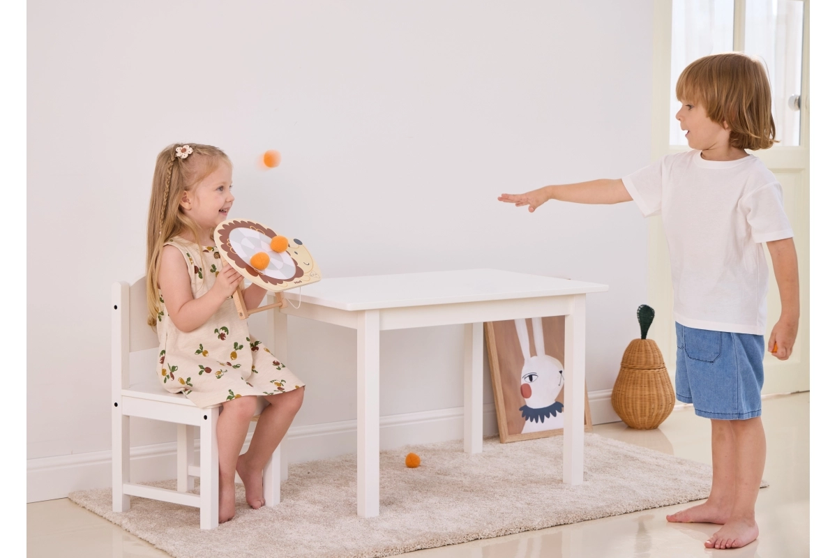 Ta drewniana zabawka została zaprojektowana dla dzieci od 3 roku życia i zapewnia doskonałą zabawę poprzez celne rzucanie piłeczek do tarczy. Dzięki temu dzieci mogą doskonalić swoje umiejętności celowania. Ponadto zabawka jest łatwa do składania i rozkładania, co ułatwia jej przenoszenie i utrzymanie.