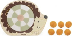 Zabawka zawiera tarczę z trzema strefami punktacji, a zestaw obejmuje sześć miękkich piłeczek, które są bezpieczne dla małych dzieci.