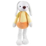 Miękka tekstylna powierzchnia i lekka wypełnina sprawiają, że króliczek jest idealną zabawką do przytulania. Certyfikaty CE i EN 71 gwarantują bezpieczne użytkowanie.