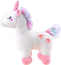 Różowy róg, tęczowa grzywa i kwiatuszki z boku nadają zabawce magiczny wygląd i wspierają rozwój wyobraźni.