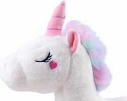 Unikalne połączenie uroczego designu i wygody sprawia, że ten jednorożec to wspaniały kompan na wycieczki, do lekarza i do łóżeczka, zapewniając spokojne, bajkowe sny.