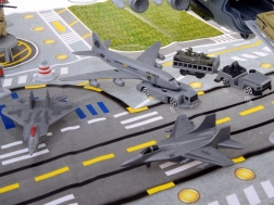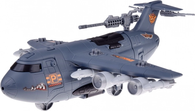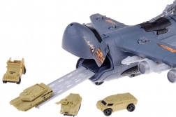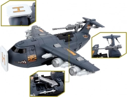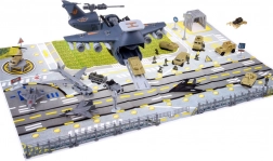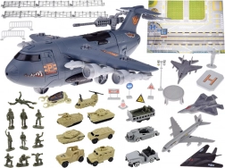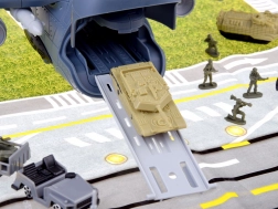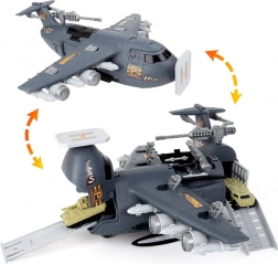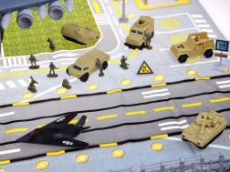 Duże lotnisko – wojskowa baza z samolotami to zestaw dla fanów zabawy samolotami, który zapewni mnóstwo strategicznej rozrywki. Zestaw został starannie opracowany z dbałością o drobne wojskowe detale, przeznaczony do zabawy dla małych strategów, kierowców i pilotów armii. Duży wojskowy samolot posiada wiele funkcji, które zapewnią małemu pilotowi godziny zabawy. Samolot ma otwierany kokpit pilota, wysuwaną rampę, otwieraną tylną część do przestrzeni ładunkowej, w której znajduje się miejsce na sprzęt. To latające wojskowe pojazd jest wyposażone w dużą liczbę karabinów i rakiet. Po otwarciu włazu umieszczonego w górnej części samolotu można wysunąć działko. Na skrzydłach samolotu również ukryto uzbrojenie, które można umieścić w górnym module. Zestaw został wyposażony w matę, na której znajduje się wiele pasów dróg i startów dla wojskowych pojazdów, co zapewni każdemu małemu miłośnikowi wojskowych gier zabawę na całe godziny.