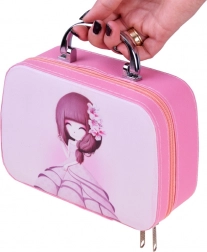 Ten kuferek zawiera wszystkie niezbędne narzędzia do wykonania efektownego makijażu i stylizacji paznokci. Idealny dla młodych dziewczynek rozpoczynających przygodę z kosmetykami.