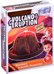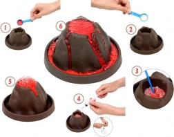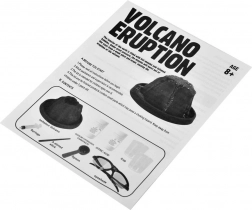 Cały eksperyment zaczyna się od założenia okularów ochronnych. Aby wywołać erupcję, odmierz łyżeczką odpowiednią ilość dodatków i wsyp je do wulkanu. Za pomocą mieszadełka wszystko dokładnie wymieszaj. Do kubeczka wlej wodę, którą następnie dodaj do proszku przy pomocy strzykawki, co spowoduje spektakularną erupcję.