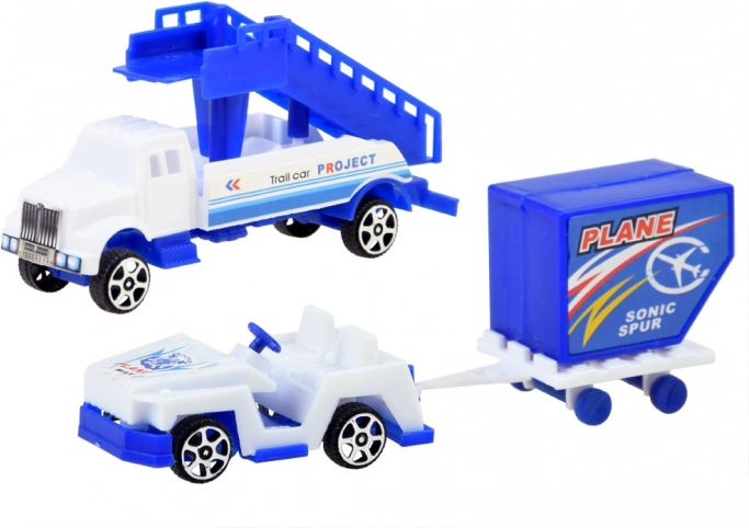 Zawiera samochód techniczny, pojazd z trapem pasażerskim oraz wózek bagażowy, aby kompleksowo symulować środowisko lotniska.