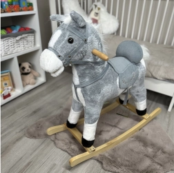 Elegancki szaro-biały design i miękki plusz sprawiają, że konik na biegunach jest piękną ozdobą pokoju dziecięcego i ulubioną zabawką na co dzień. Solidne drewniane płozy zapewniają płynny i pewny ruch, a uchwyty i strzemiona pomagają dzieciom utrzymać stabilność. Wygodne siodło zachęca do długiego bujania i fantastycznych wypraw.
