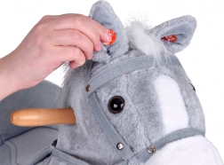Przyciski w uszach aktywują autentyczne dźwięki rżenia i galopu, a konik porusza wtedy ogonem i pyskiem. Jeszcze więcej zabawy i wyobraźni przy każdym bujaniu.