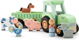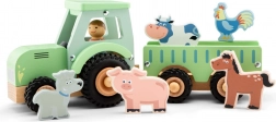 Ten wysokiej jakości drewniany traktor z przyczepą i zestawem zwierzątek oferuje dzieciom autentyczne wiejskie wrażenia. Dzięki funkcyjnym kółkom i odłączanej przyczepie mali farmerzy mogą łatwo przewozić zwierzątka i tworzyć własne historie z życia na farmie.