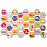 Czytelne i atrakcyjne obrazki samochodów, pociągów, autobusów czy strażaków wspierają rozpoznawanie wzrokowe oraz tematyczną naukę o transporcie.