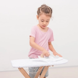 Dziecięca deska do prasowania i żelazko umożliwiają dzieciom zaangażowanie się w zabawowe naśladowanie prac domowych.