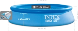 Ciesz się latem z rodzinnym basenem Intex Easy Set 244 × 61 cm, który wyróżnia się szybkim montażem w 10 minut, wytrzymałym 3-warstwowym PVC oraz w zestawie znajduje się pompa filtrująca. Świetny wybór do ogrodu, gdzie docenisz łatwą konserwację i stabilną konstrukcję o pojemności wody do 1 942 l.