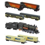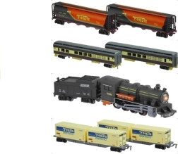 - Zawartość opakowania: lokomotywa, 6 wagonów, ok. 10 m torów, 4 drzewka