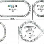 - Lokomotywa, 6 wagonów, ok. 10 m torów, 4 drzewka