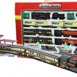 W opakowaniu znajdziesz lokomotywę, 6 wagonów, drzewka i długie tory – wszystko gotowe do szybkiego złożenia i zabawy.