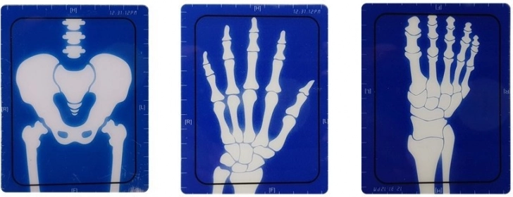 Zestaw zawiera rekwizyty zdjęć RTG dłoni, stopy i miednicy. Dzieci w przystępny sposób uczą się o ludzkim szkielecie.